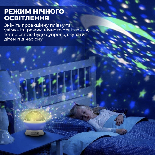 Круглі обертається нічник-проектор зоряне небо Star Master чудовий подарунок для вашої дитини. Він освітить кімнату вашого малюка чудовими зірками та місяцем.