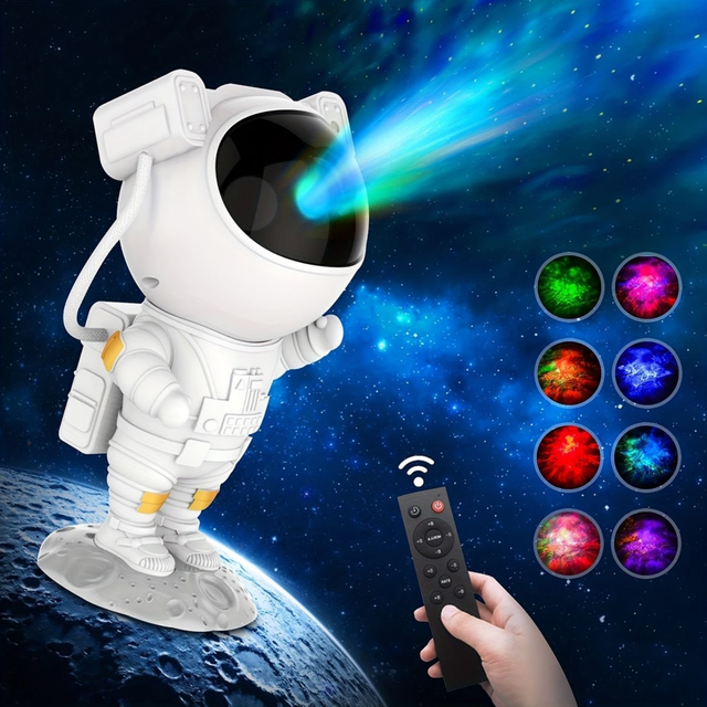 Лазерний проектор галактики Астронавт стане чудовим нічником для юних підкорювачів космосу і однією з улюблених іграшок! 8 яскравих різнокольорових зображень галактики оживлять та прикрасять не лише дитячу кімнату, а й вечірку, сімейний перегляд кіно чи ігрову кімнату. Різноманітність світлових ефектів дозволяє повною мірою відчути пишність зоряного неба.