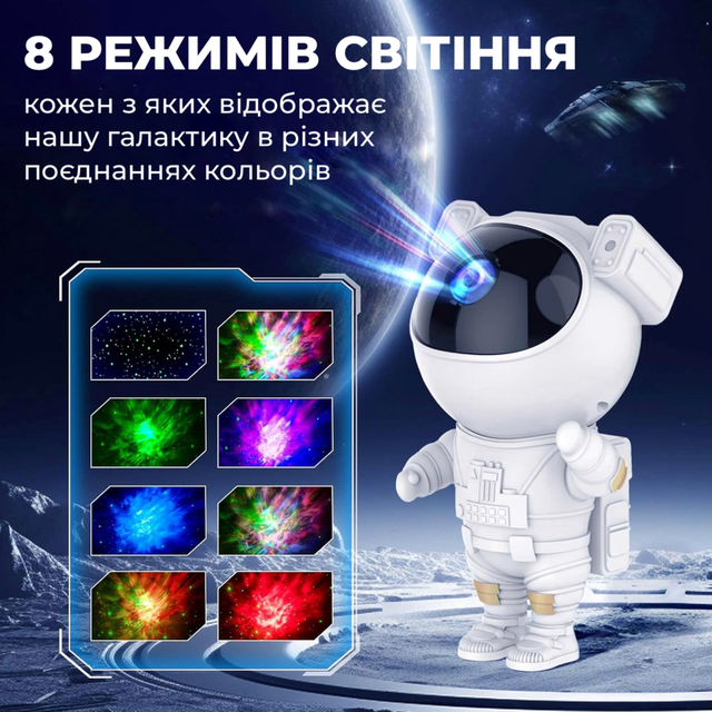 - Ночник-проектор з ефектом зоряного неба Астронавт