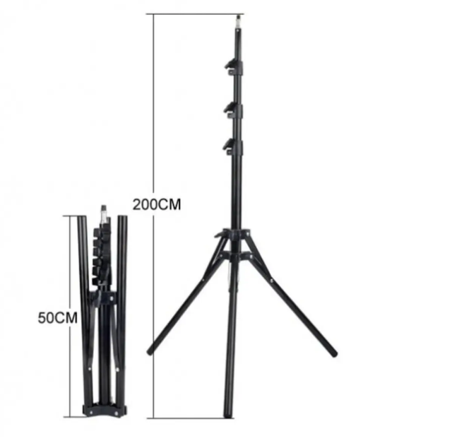 Універсальний посилений штатив 2,1 метра для кільцевої лампи телефону, камери та фотоапарата - це практичний аксесуар, який відрізняється винятковою надійністю, що гарантує повну безпеку встановленого на ньому обладнання. Дана модель призначена для стійкої установки на потрібній висоті різних сумісних пристроїв та гаджетів, таких як: фото та відео камери, лампи та прожектори, відбивачі, тримачі для смартфонів. Штатив для кільцевої лампи зручно регулюється по довжині від 70 см до 210 см. При цьому її можна легко скласти та транспортувати.