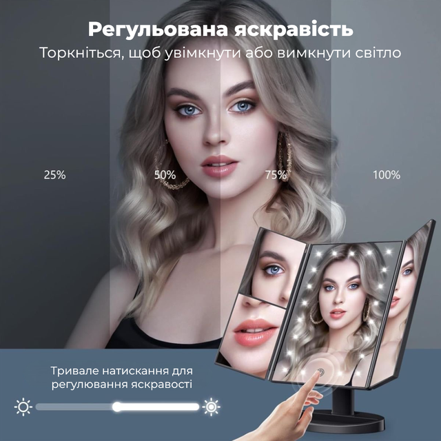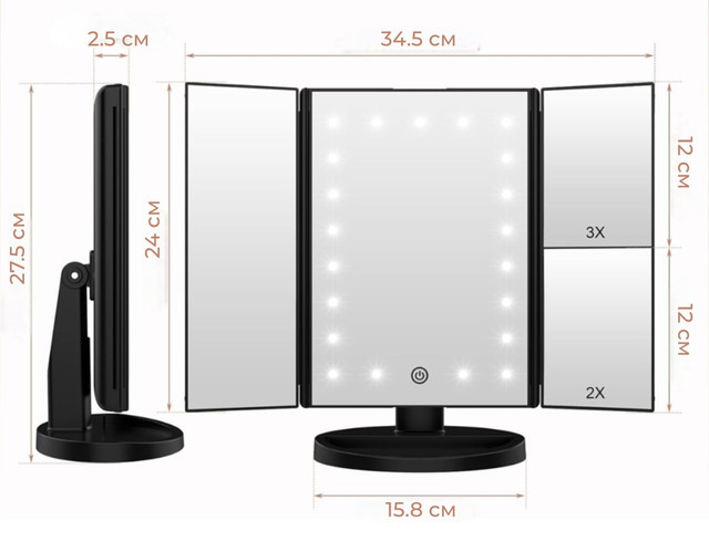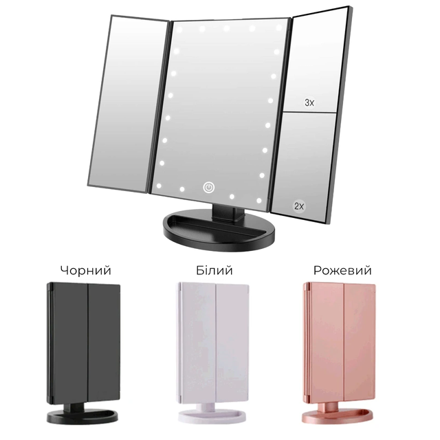- Косметичне потрійне дзеркало із сенсорним LED екраном Magic Makeup Mirror