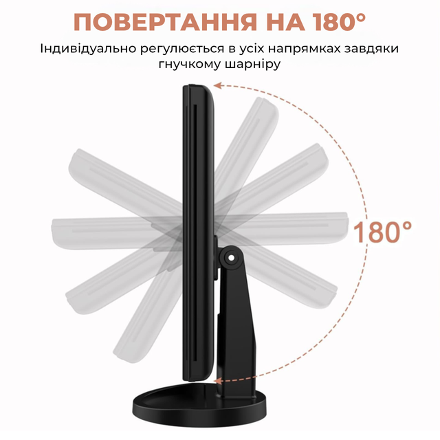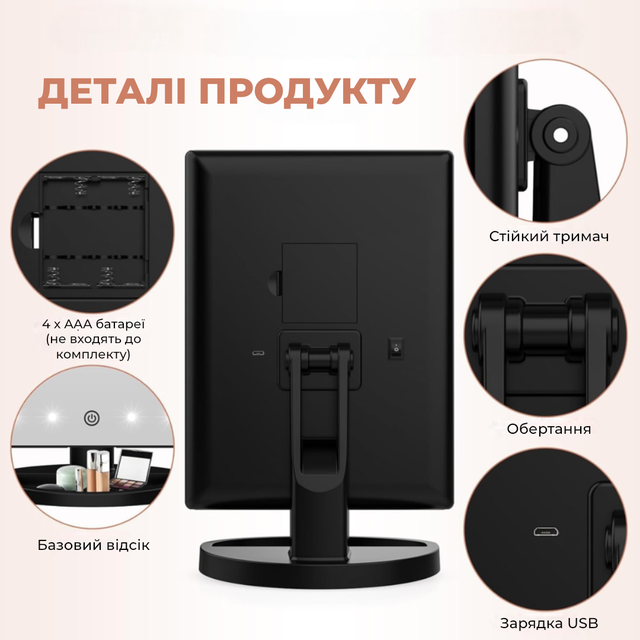 22 світлодіоди забезпечують рівномірне освітлення обличчя з усіх боків у будь-який час доби, що дозволить вам рівномірно нанести косметику, не допускаючи помилок.