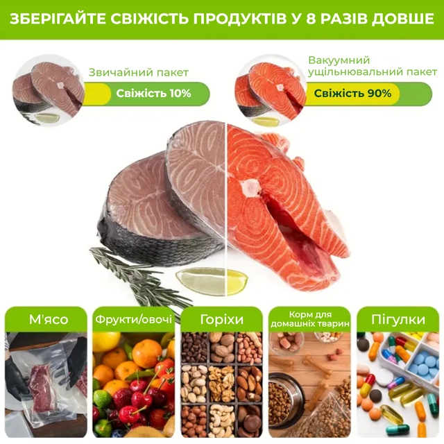 - Підходять для будь-яких побутових вакуумних пакувальників.