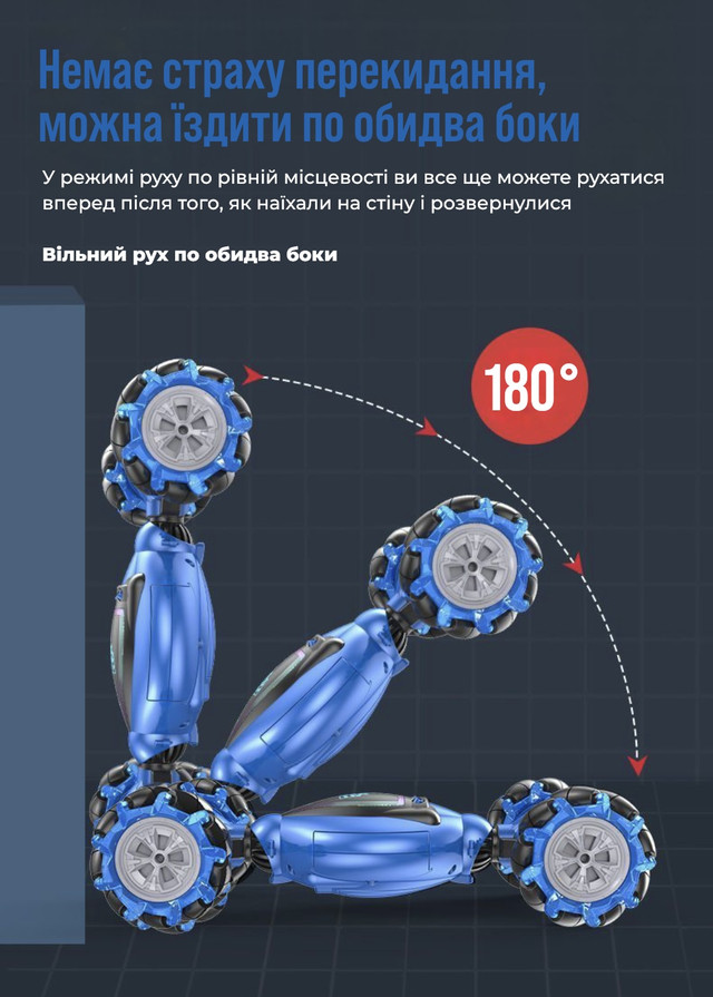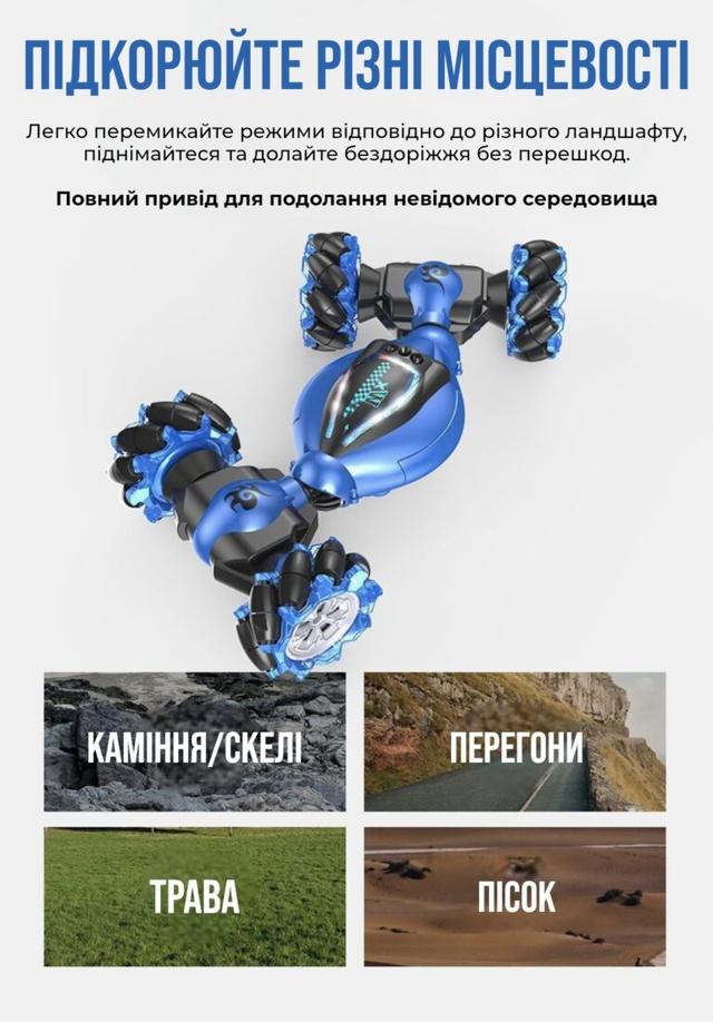 Дитяча машинка на пульті Stunt завдяки своїм широким можливостям управління безумовно може вважатися однією з найкращих радіокерованих машин на ринку. Вона пропонує користувачам унікальні функції, які дозволяють не лише контролювати швидкість та напрямок руху, а й програмувати складні маневри. Налаштуйте послідовність дій, а потім відтворюйте їх. Це надасть унікальну можливість повного занурення в атмосферу гонок та драйву. Ця радіокерована машина стане відмінним компаньйоном для проведення часу, дозволяючи вам робити більше, ніж просто їздити.